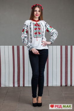 Біла сорочка з червоними маками та чорним орнаментом “Магія”