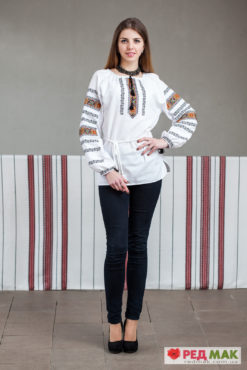 Біла сорочка з довгим рукавом та геометричним орнаментом