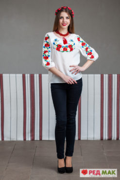 Яскрава та життєрадісна вишиванка виготовлена з легкої літньої тканини та всипана вінками мальовничих польових квітів. Призначена для теплих, сонячних весняних та літніх днів. Вигідна Ціна! Тканина: шифон. Вишивка: гладь. Виготовлено в Україні з любов’ю.
