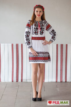Чудове втілення української традиційної вишивки в класичному фасоні сучасного жіночого плаття. Останніми роками традиційний борщівський візерунок здобуває все більшу популярність, тому на “вау!” сприймається в кожному куточку нашої країни, ба навіть закордоном. Кращі світові бренди не відмовилися б мати таку красу у своїй колекції, але, на їх жаль, ця лінія належить виключно українським майстриням. Плаття добре скроєне і укомплектоване красивим вишитим поясом, який вигідно акцентує Вашу талію. Тканина: домоткане полотно. Вишивка: хрестик. Виготовлено в Україні з любов’ю.