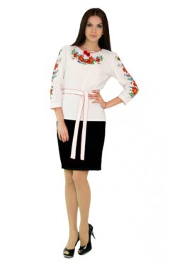 Барвиста вишиванка для жінок з красиво вишитим хрестиком рукавом.